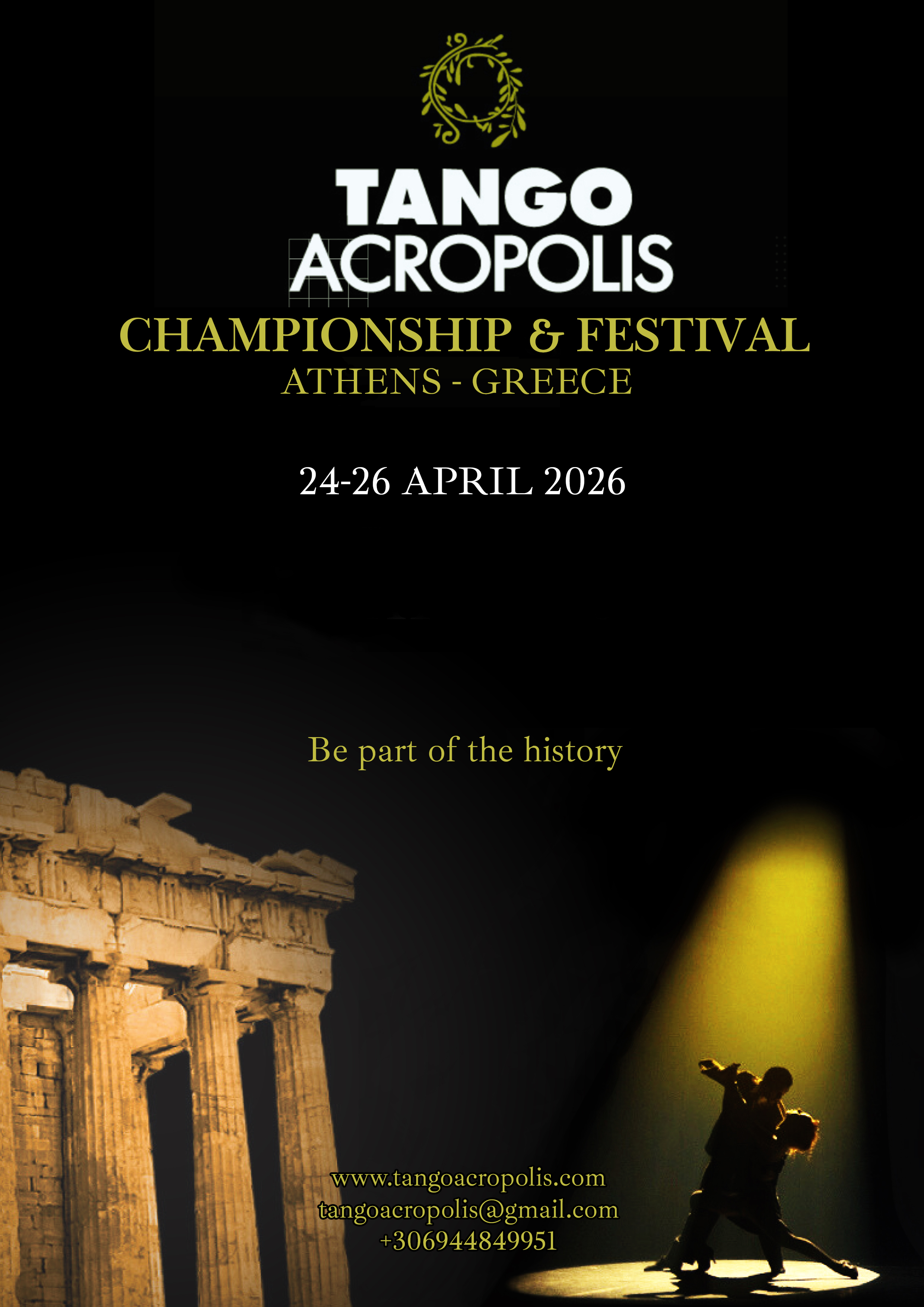 Based in Athens — the birthplace of art and culture — Tango Acropolis highlights Tango as a means of expression, communication, and human connection, conveying its profound philosophy and spirit through high-level artistic and educational initiatives.